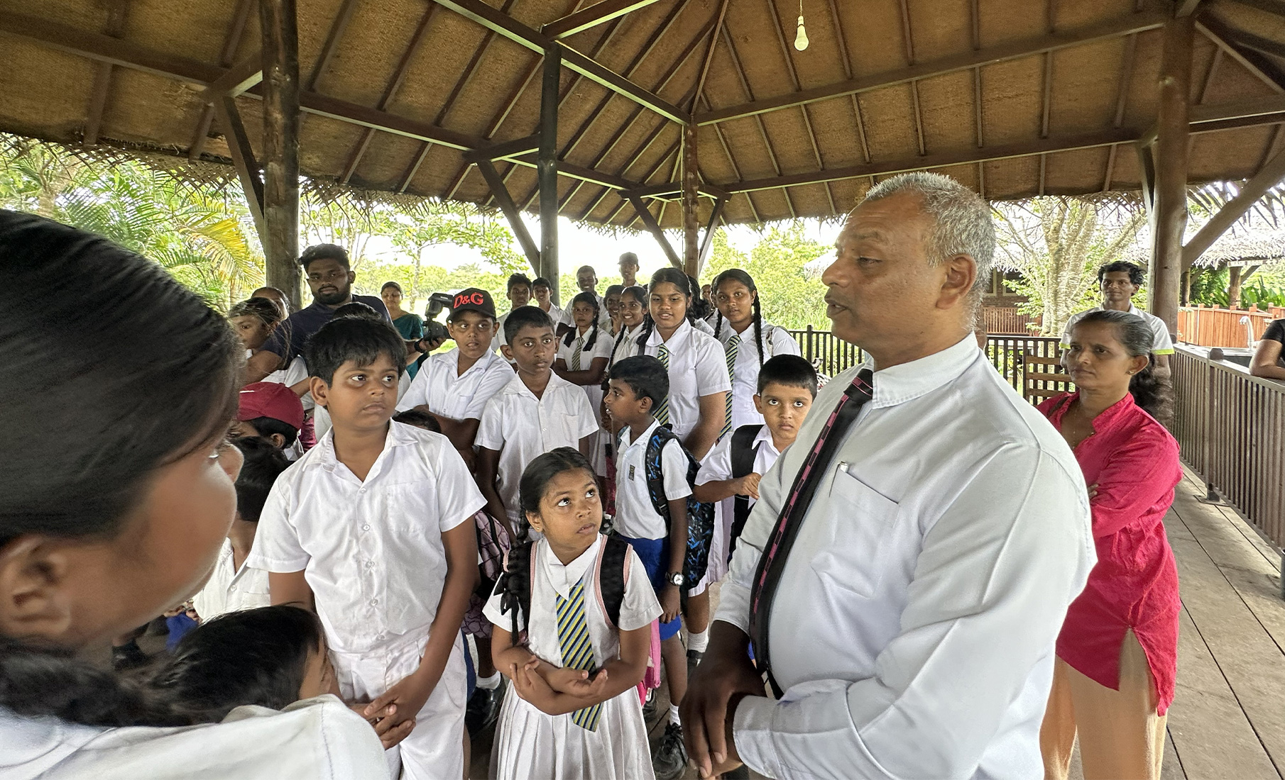 Not long after, Madhu welcomed the students, and we joined her. The student group consisted of around forty curious children, from year 2 to taller and more awkward teenagers from year 9. Narmadha sprang into action and gave the students a succinct introduction to the wetlands that were just a stone’s throw away from their school.